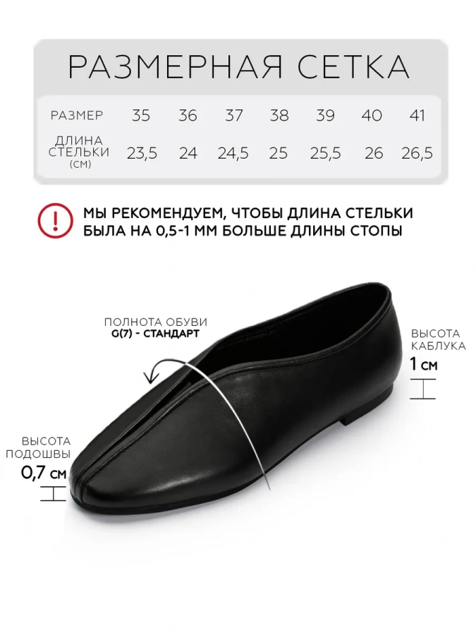 Длина стельки: 35р - 23,5см/ 36р - 24,0см/ 37р - 24,5см/ 38р - 25,0см/ 39р - 25,5см/40р - 26,0см/41р - 26,5см. Полнота F(6) (на узкую полноту стопы).