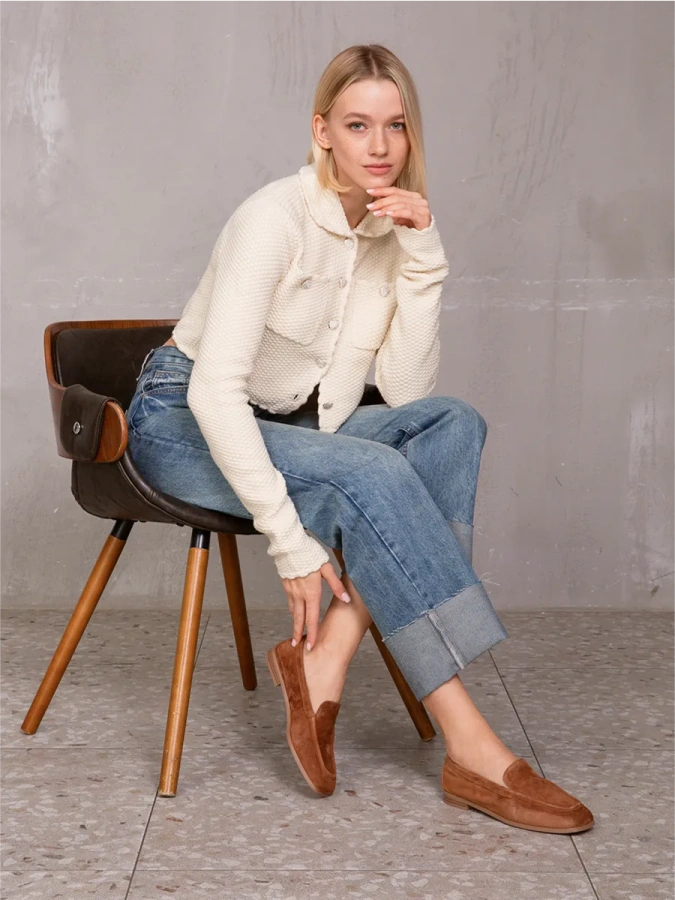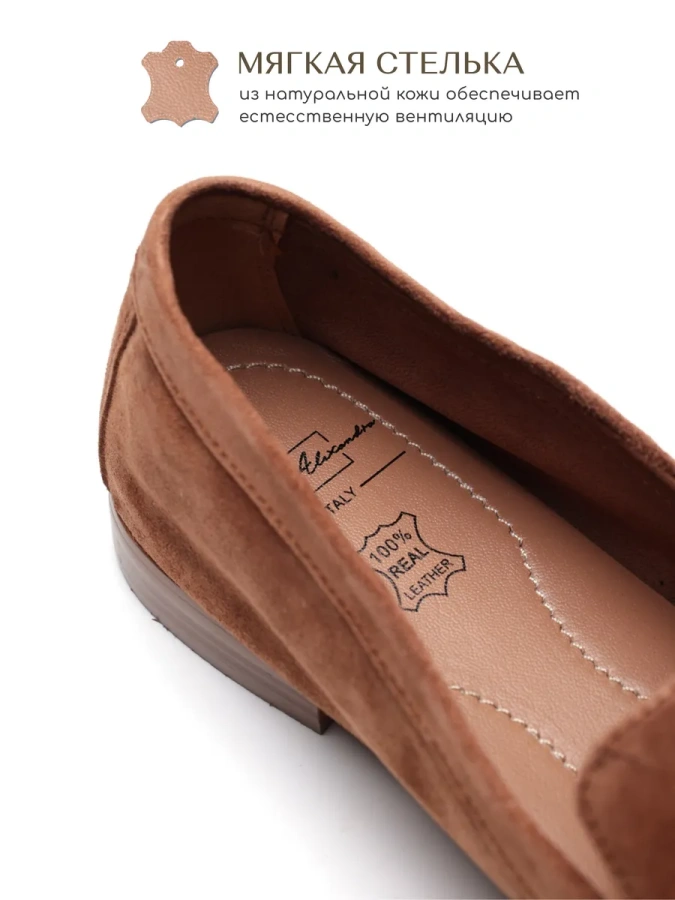 Лоферы SOFIA-ALEXANDRA — это воплощение элегантности и комфорта. Изготовленные из 100% натуральной кожи (велюра), они станут отличным дополнением к вашему гардеробу в осенне-зимний период. Бежевый цвет лоферов делает их универсальными и легко сочетаемыми с различными элементами гардероба в стиле casual. Удобная подошва из полимерного материала и небольшой (1 см) её высота обеспечивают комфорт при ходьбе, а высота каблука в 2,5 см делает лоферы удобными и устойчивыми. Отсутствие застёжек придаёт модели лаконичность и изящество. Эти лоферы — идеальный выбор для тех, кто ценит качество и стиль в каждой детали.