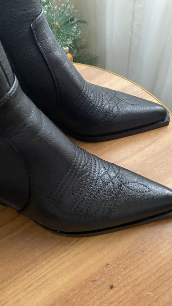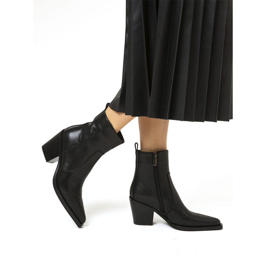 Ботинки бренда SOFIA-ALEXANDRA — это воплощение стиля и комфорта для осеннего и зимнего сезонов. Изготовленные из 100% натуральной кожи, они отличаются высоким качеством и долговечностью. Чёрный цвет ботинка делает их универсальными и легко сочетаемыми с различными элементами гардероба в стиле casual. Байка в качестве подкладки и стельки обеспечивает дополнительный комфорт и тепло. Высота подошвы в 1 см и ковбойский каблук высотой 8,5 см придают ботинкам уникальный и запоминающийся вид. Удобная застёжка на молнии с внутренней стороны модели обеспечивает лёгкость надевания и комфорт в носке. Эти ботинки станут отличным дополнением к вашему осенне-зимнему гардеробу, сочетая в себе стиль, качество и удобство.