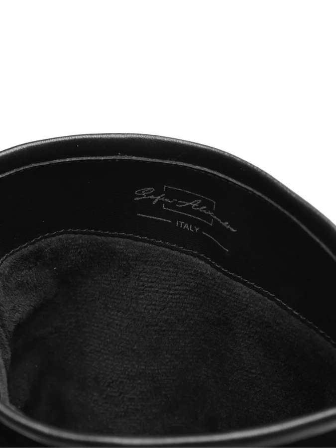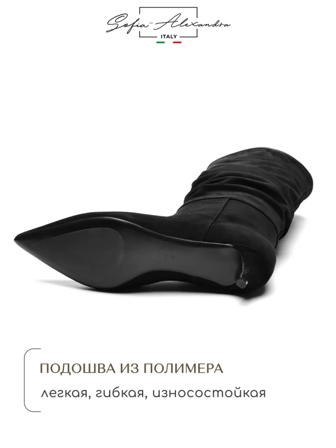 Слаучи от бренда SOFIA-ALEXANDRA — это идеальный выбор для любителей комфортной и стильной обуви. Изготовленные в Италии, эти туфли отличаются высоким качеством и вниманием к деталям. Чёрный цвет делает их универсальными и легко сочетаемыми с различными элементами гардероба. Натуральная кожа (велюр) обеспечивает долговечность и приятный внешний вид. Подкладка и стелька из байки создают дополнительный комфорт при носке. Высота подошвы — всего 0,7 см, а каблук рюмочкой высотой 4,5 см обеспечивает удобство и лёгкость шага. Отсутствие застёжек придаёт модели особый шарм и лаконичность.