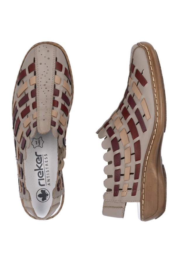 Женские слингбэки из натуральной кожи от немецкого бренда Rieker. Главная отличительная черта обуви этого бренда - непревзойденное удобство и комфорт. Мягкая стелька с «эффектом памяти» Antistress индивидуально подстраивается под форму стопы, снимает чувство усталости и разгружает суставы, поддерживает и амортизирует стопу. Гибкая подошва с эффектом ударопоглощения обладает отличной амортизацией и хорошим сцеплением с поверхностью. Удобная колодка адаптирована под женскую стопу и длительную носку, а эластичные крепления ремешка вокруг щиколотки облегчает процесс обувания. Модель имеет полноту F и подойдет на стандартную и более узкую стопу.