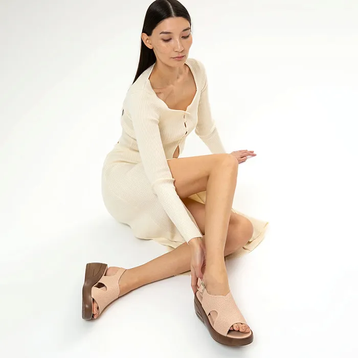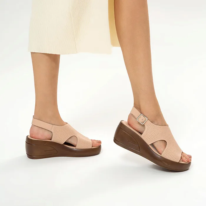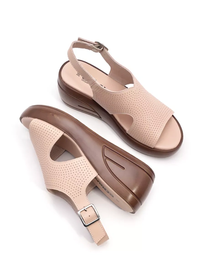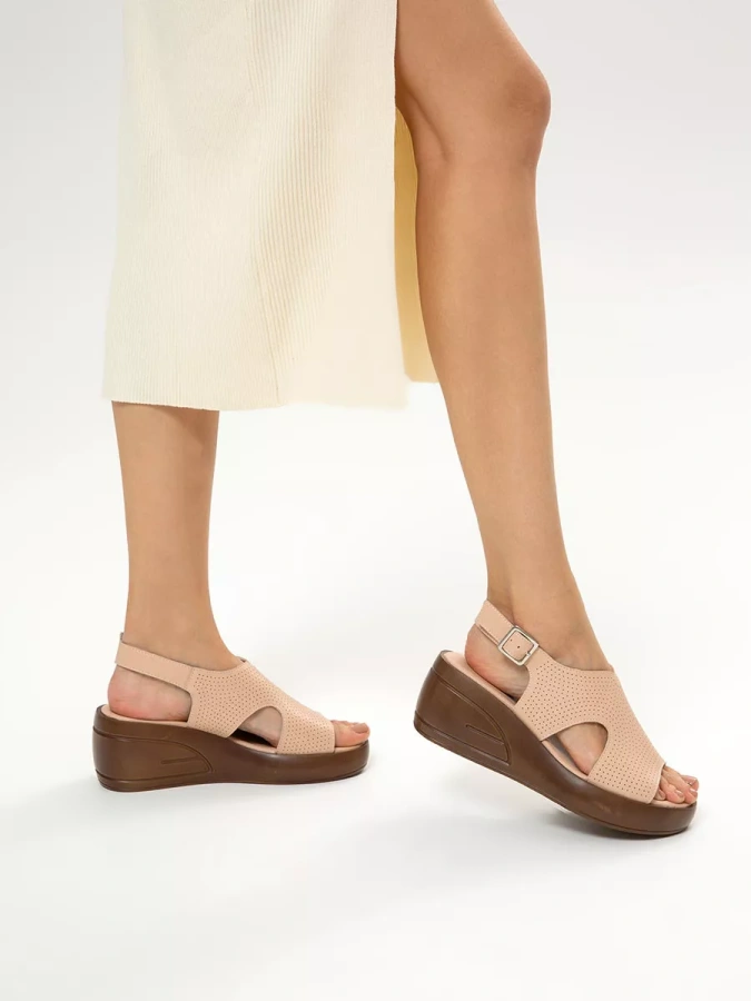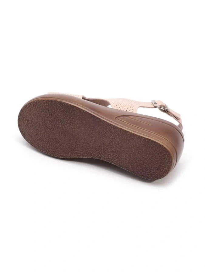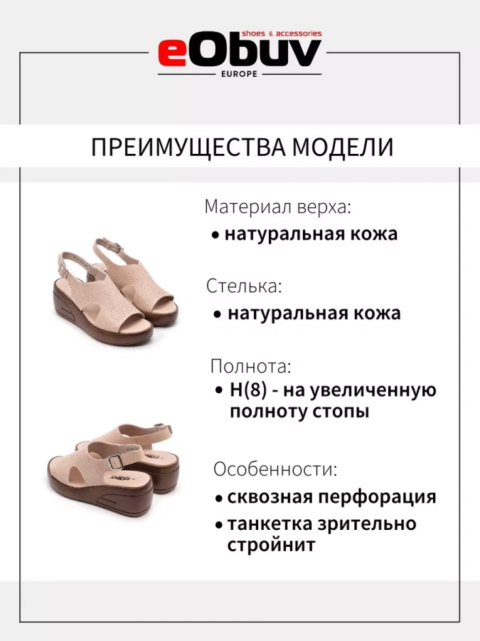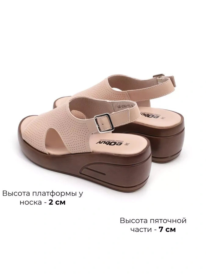Эти босоножки — воплощение элегантности и комфорта. Натуральная кожа верха и стельки дарит ощущение мягкости и тепла, обеспечивая долговечность. Искусственная кожа внутренней подкладки добавляет практичности, создавая уют и защиту. Полимерная подошва высотой 2 см делает каждый шаг лёгким и удобным, а изящная танкетка с высотой каблука 7 см придаёт образу утончённость и стиль.