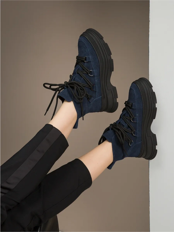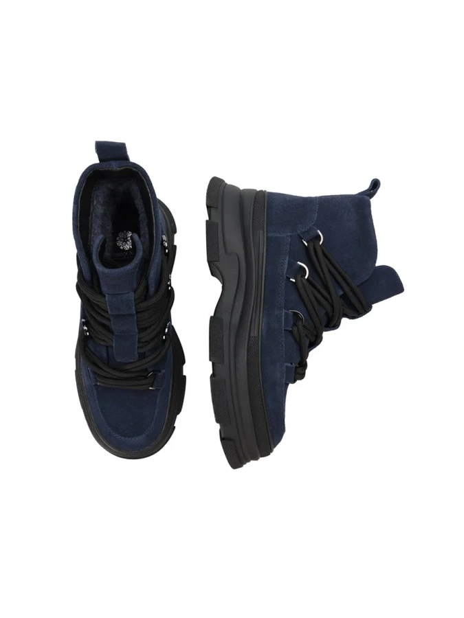 Синий цвет ботинок придает образу особый акцент, а платформа высотой 6 см обеспечивает стиль и удобство. Шнуровка добавляет индивидуальности и позволяет создать идеальную посадку. Модель маломерит на 0,5 размера, актуальная информация о длине стельки в см представлена на последнем фото. Модель имеет полноту G(7) и подойдет на стандартную стопу и небольшой +/-.