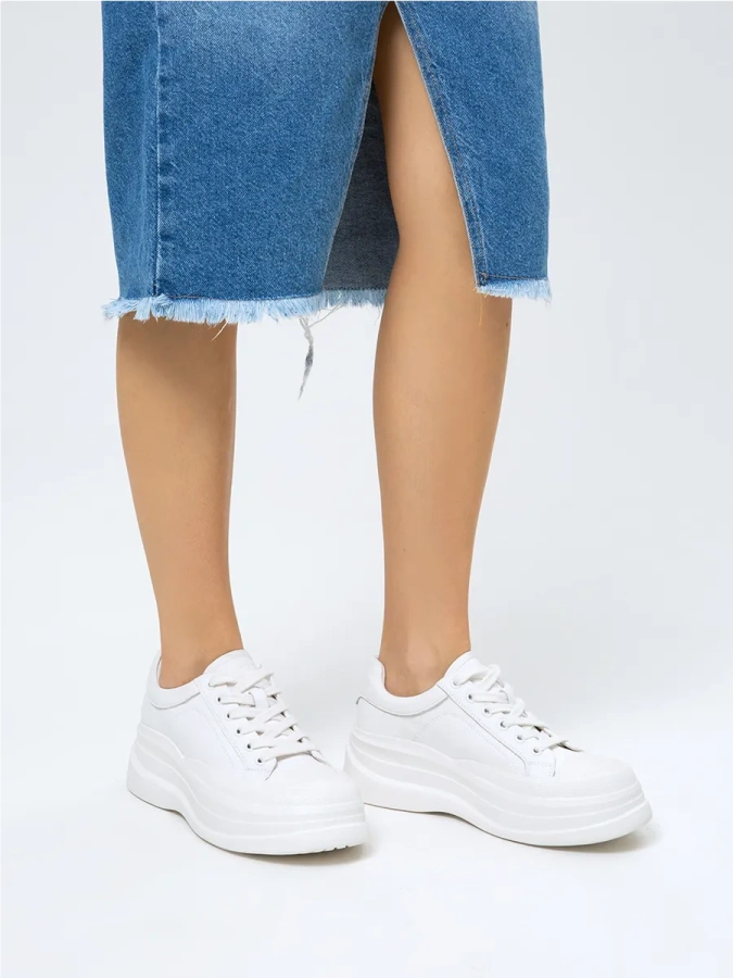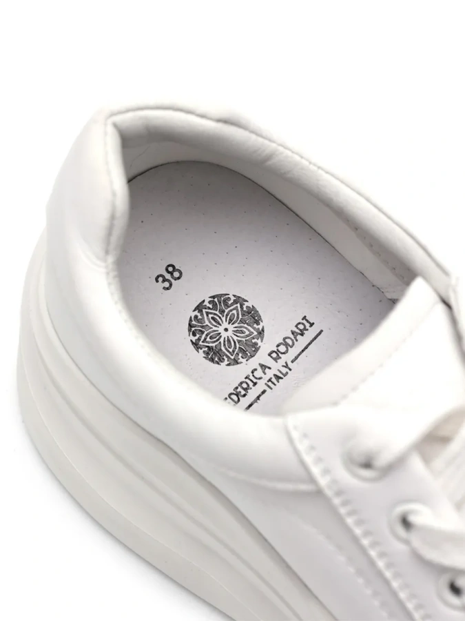Модель изготовлена из натуральной телячьей кожи высшего качества. Специалисты-подологи разработали уникальные колодки, идеально повторяющие форму женской стопы. Белые кеды прекрасно сочетаются с одеждой в стиле кэжуал, дополняя любой образ. Съемная кожаная стелька обеспечивает максимальный комфорт и естественную вентиляцию. Она легко чистится и может быть заменена на индивидуальную, сохраняя безупречный внешний вид обуви. Бренд Федерика Родари тщательно прорабатывает каждую деталь, создавая роскошные и удобные изделия.