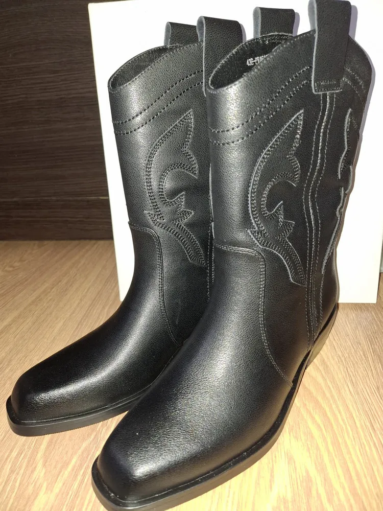 Изготовленные из 100% натуральной кожи, они отличаются высоким качеством и долговечностью. Байка внутри обеспечивает комфорт и тепло, делая эти казаки не только стильными, но и практичными.