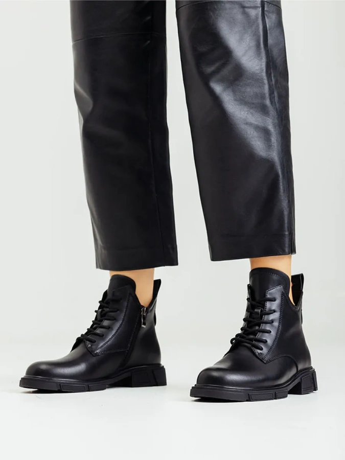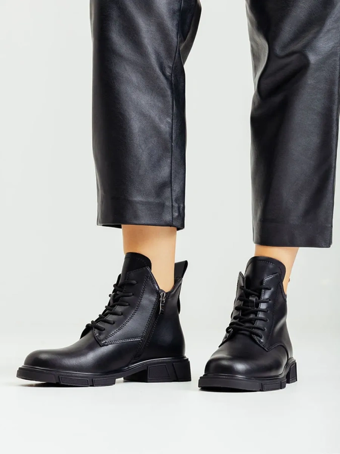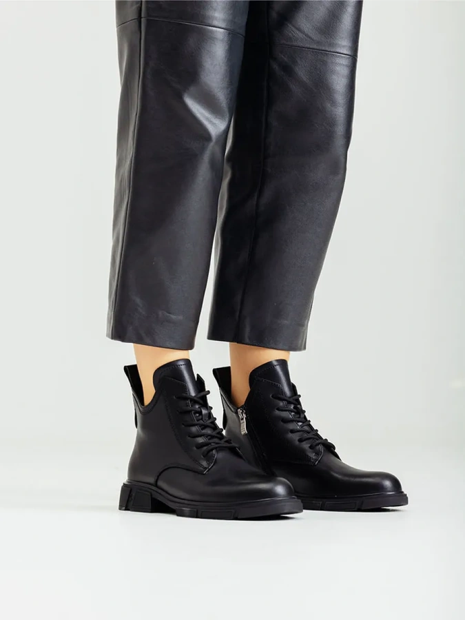 Модель выполнена из натуральной кожи . Эти практичные полуботинки оснащены удобной шнуровкой, которая позволяет регулировать степень посадки на ноге. Это означает, что каждая девушка сможет найти свой оптимальный размер и достичь максимального комфорта. Наличие молнии облегчает процесс обувания. Ботинки имеют утепленную байкой подкладку, которая отлично сохраняет тепло. Хорошо подойдут на осень-весну и на не очень холодную еврозиму. Тракторная подошва обладает износостойкостью и хорошим сцеплением с поверхностью. Ботинки на молнии оснащены также стелькой на байке, что повышает теплоизоляционные свойства и придаёт max комфорт.