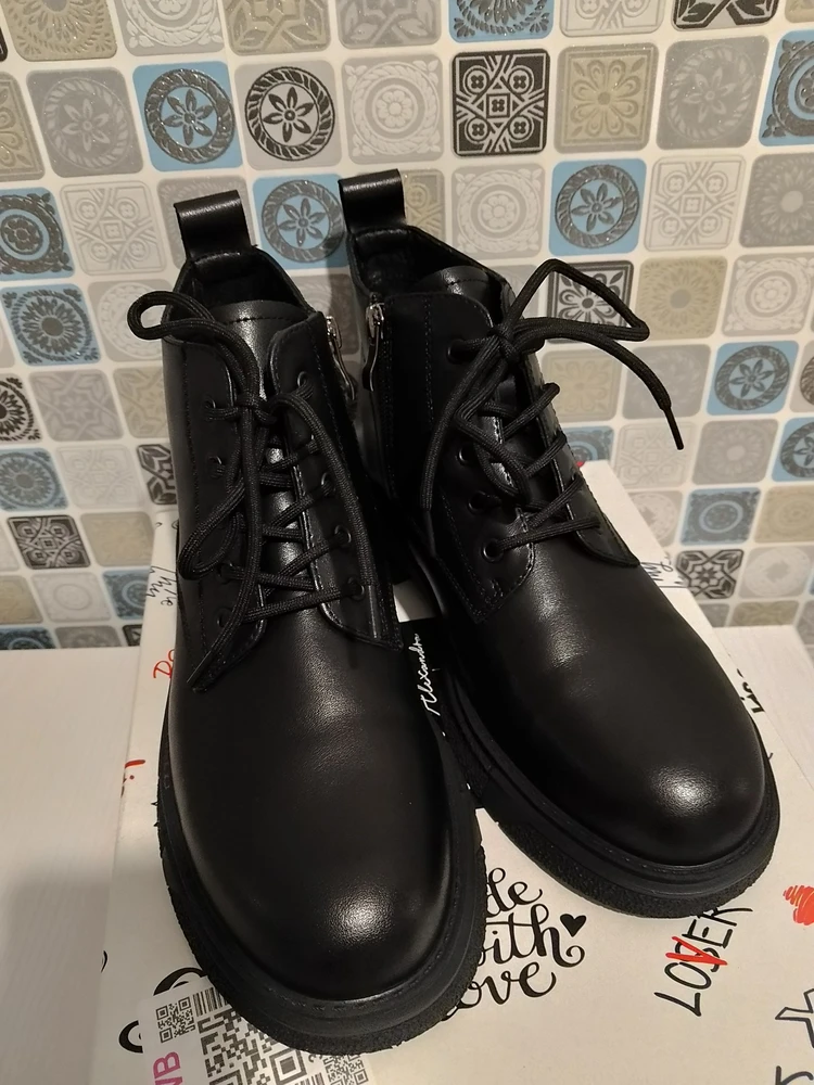 Модель выполнена из 100% натуральной кожи. Классическая подошва обладает износостойкостью и хорошим сцеплением с поверхностью. Особое внимание производитель уделяет различным деталям, придающим обуви особую роскошь и удобство использования. Ботинки оснащены молнией, оборудованной защитным клапаном с внутренней стороны, который предотвращает защемления и зацепки одежды. Сочетание молнии и шнуровки облегчает процесс обувания. Шнуровка позволяет регулировать степень посадки на ноге. Это означает, что каждая девушка сможет найти свой оптимальный размер и достичь максимального комфорта. Ботильоны имеют утепленную байкой подкладку, которая отлично сохраняет тепло. Ботинки на байке смотрятся очень стильно и гармонично закончат любой образ. Хорошо подойдут на осень-весну и на не очень холодную (европейскую) зиму.