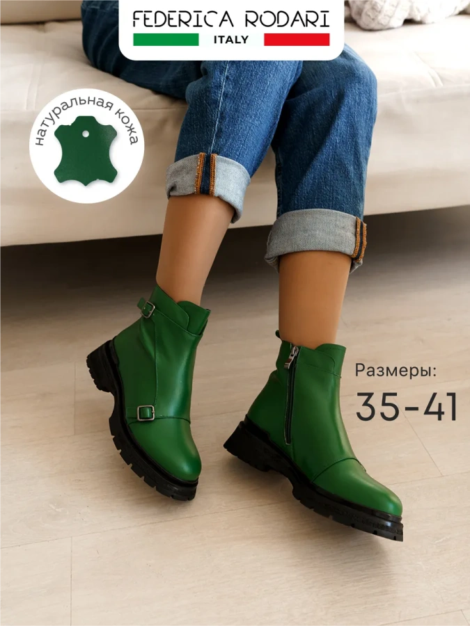 Представляем ультрамодные женские ботинки FEDERICA RODARI, символ комфорта и стиля, прямо из Италии. Зеленые ботинки из коллекции Осень-Зима 2023-2024 обещают добавить яркости и стиля Вашему осеннему гардеробу.