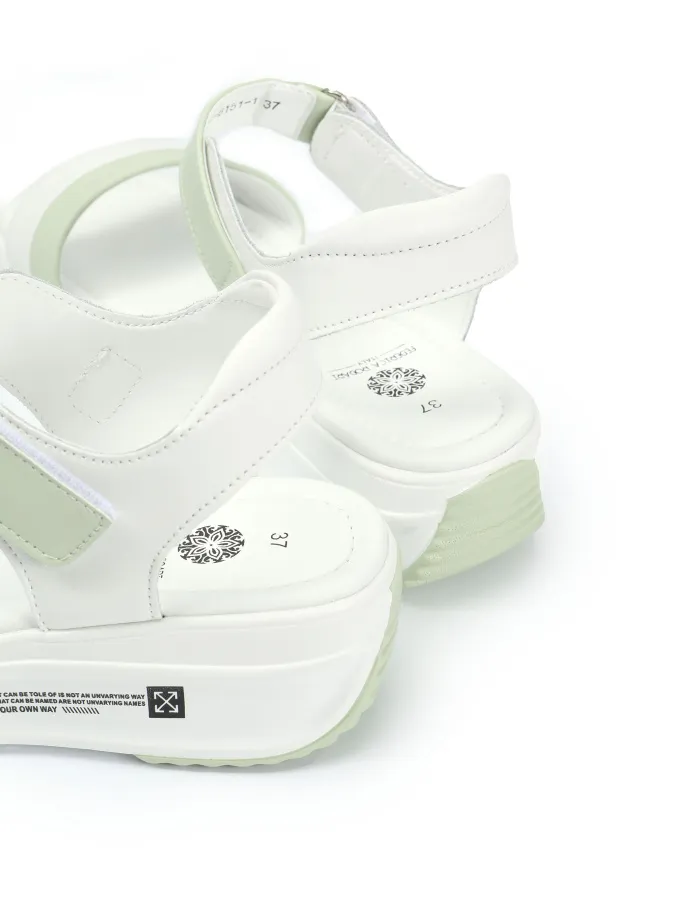 Белый цвет модели добавит яркости и лёгкости образу в стиле casual. Изготовленные из натуральной кожи, они отличаются высоким качеством и долговечностью. Мягкая стелька из натуральной кожи обеспечивает комфорт при ходьбе, а искусственная кожа подкладки гарантирует удобство и лёгкость ухода. Платформа высотой 2 см и устойчивый каблук высотой 5 см делают босоножки удобными и стильными. Липучка обеспечивает лёгкость в использовании и надёжную фиксацию.