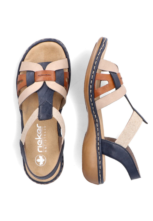 Женские сандалии от немецкого бренда Rieker. Главная отличительная черта обуви этого бренда - непревзойденное удобство и комфорт. Мягкая стелька с «эффектом памяти» Antistress индивидуально подстраивается под форму стопы, снимает чувство усталости и разгружает суставы, поддерживает и амортизирует стопу.. Гибкая подошва на небольшом устойчивом каблуке обладает отличной амортизацией и хорошим сцеплением с поверхностью. Удобная колодка адаптирована под женскую стопу и длительную носку, а наличие эластичных вставок облегчает обувание. Модель имеет полноту F и подойдет на стандартную и более узкую стопу.