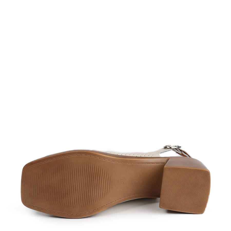 Бежевое исполнение в стиле casual подойдёт для создания повседневных образов. Натуральная кожа верха и стельки обеспечивает комфорт и долговечность обуви. Мягкая искусственная кожа подкладки гарантирует приятные ощущения при носке. Удобная высота подошвы в 1,5 см и трапециевидный каблук высотой 6 см придают босоножкам изящный и стильный вид. Застёжка с пряжкой и ремешком обеспечивает надёжную фиксацию обуви на ноге.