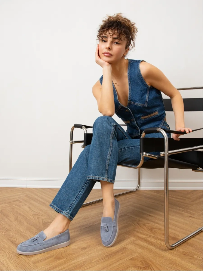 Женские туфли лоферы классические из натурального велюра от итальянского бренда Federica Rodari.