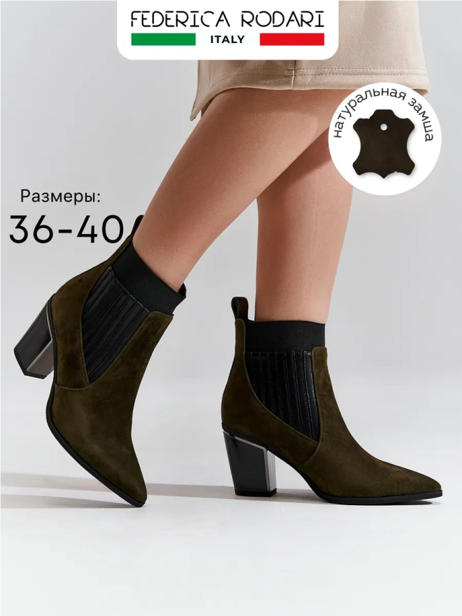 Погрузитесь в мир стиля и комфорта с ботильонами итальянского бренда FEDERICA RODARI. Цвет хаки идеально сочетается с осенними оттенками, придавая Вашему образу неповторимый шарм. Выполненные из натурального велюра, они обеспечивают не только элегантность, но и высочайший уровень комфорта.