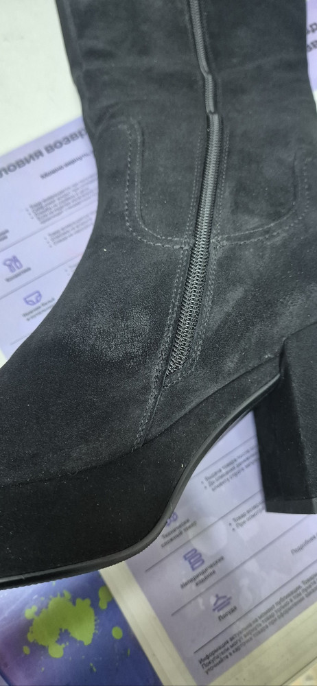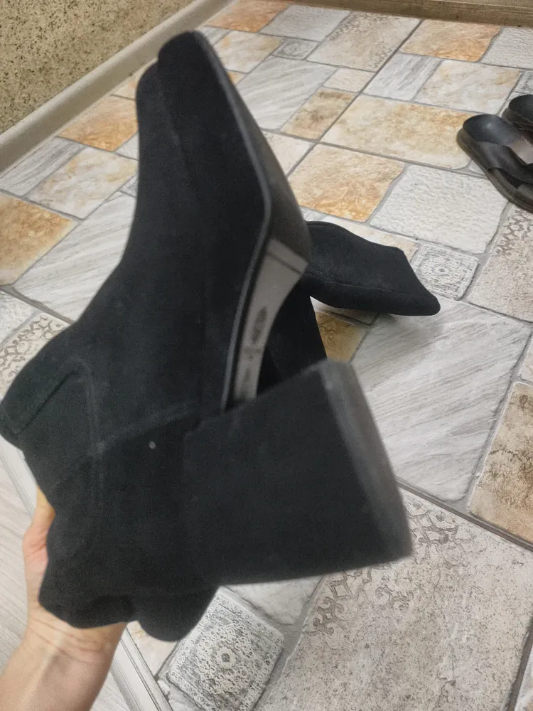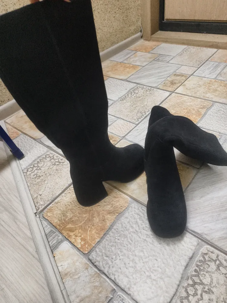 Изготовленные из мягкого велюра, они не только великолепно смотрятся, но и обеспечивают уют и комфорт. Байка в подкладке и стельке добавляет дополнительный слой мягкости, а полимерная подошва с высотой 2,3 см и трапециевидный каблук высотой 8 см придают обуви стильный акцент.Модель большемерит на 0,5 размера, актуальная информация о длине стельки в см представлена на последнем фото. Модель имеет полноту G(7) и подойдет на стандартную стопу и небольшой +/-.