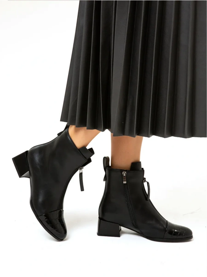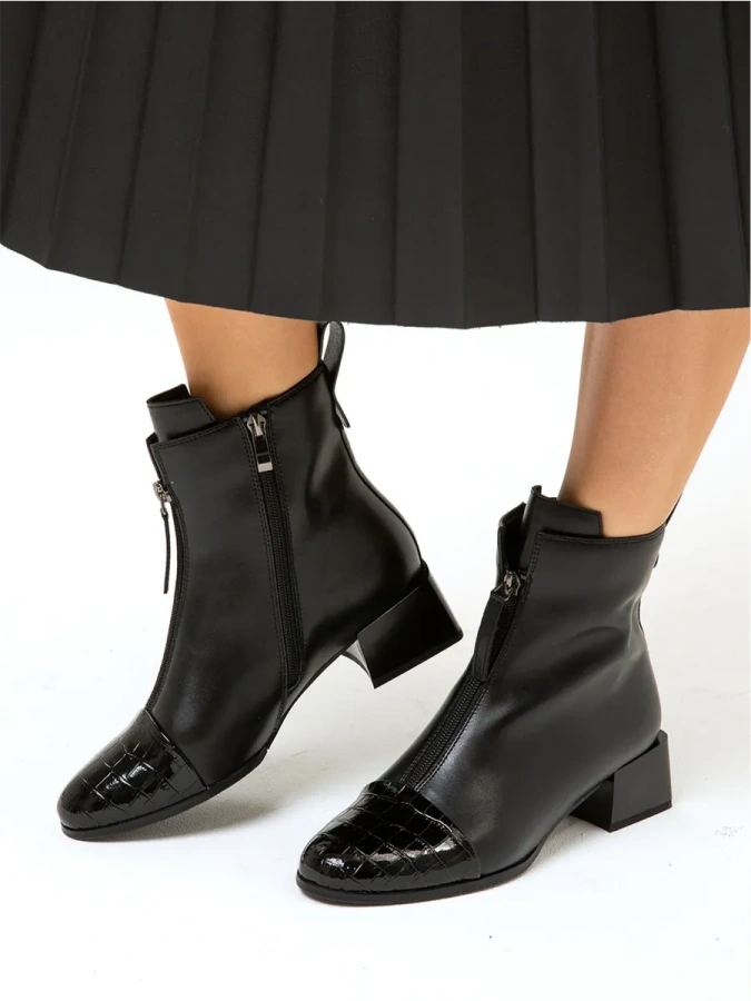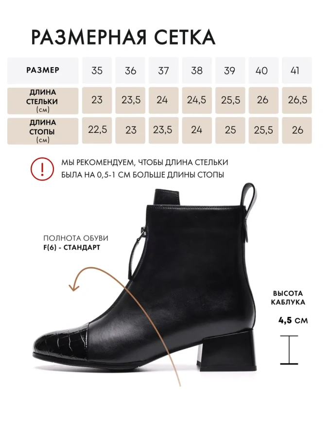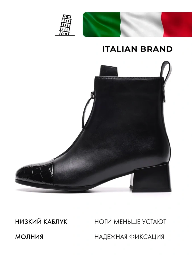 Ботинки от бренда FEDERICA RODARI — это идеальный выбор для любителей удобной и стильной обуви в стиле casual. Изготовленные в Италии из 100% натуральной кожи, они гарантируют долговечность и комфорт. Чёрный цвет делает эти ботинки универсальными для любого образа, а трапециевидный каблук высотой 4,5 см придаёт изящество. Высота подошвы в 0,5 см обеспечивает удобство при ходьбе. Подкладка и стелька из байки создают дополнительное тепло и комфорт в холодное время года.