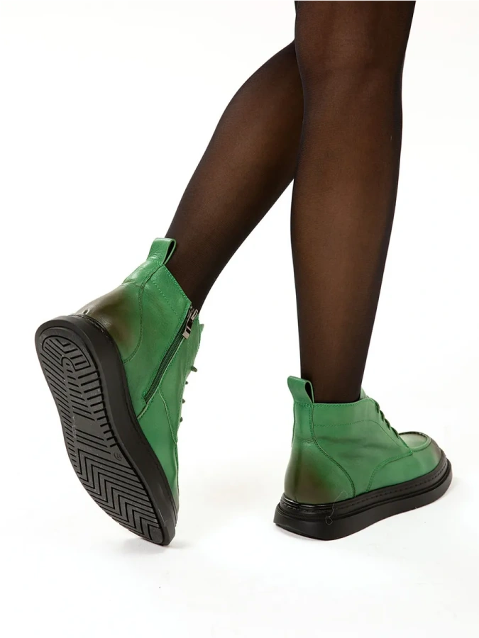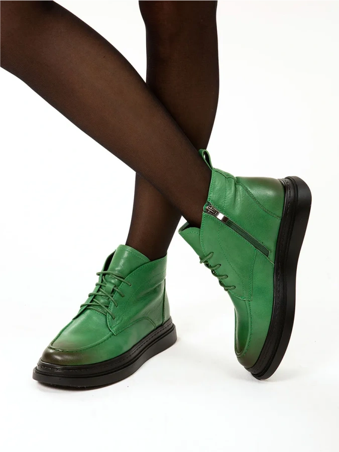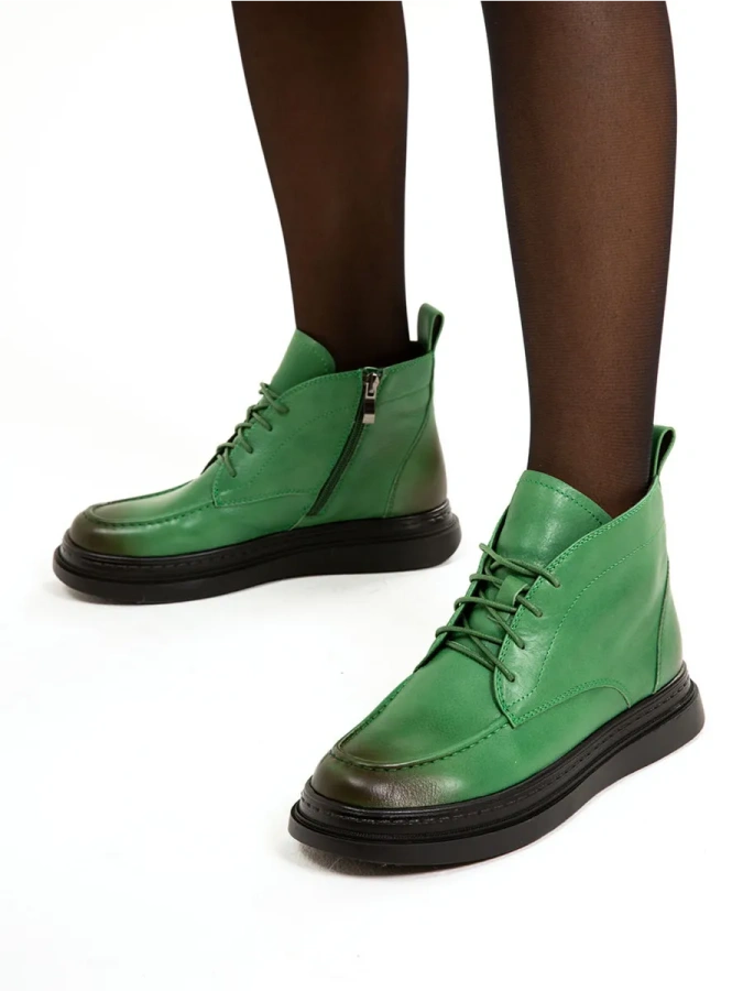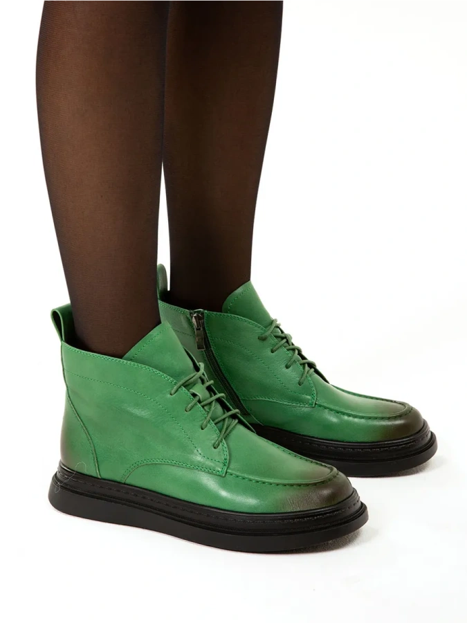 Ботинки от бренда FEDERICA RODARI — это идеальный выбор для любителей стиля casual в осенне-зимний период. Изготовленные из 100% натуральной кожи, они гарантируют долговечность и комфорт. Мягкий материал подкладки и стельки — байка — обеспечивает тепло и уют, а высота подошвы в 2,5 см и устойчивый каблук в 4 см придают модели удобную платформу. Сочетание шнуровки и молнии обеспечивает лёгкость в использовании и надёжную фиксацию стопы. Зелёный цвет ботинок делает их ярким акцентом в вашем гардеробе. Выбирая ботинки FEDERICA RODARI, вы получаете не только стильную, но и качественную обувь, которая будет радовать вас не один сезон.