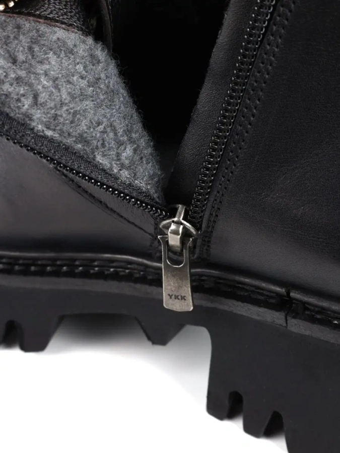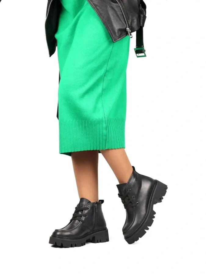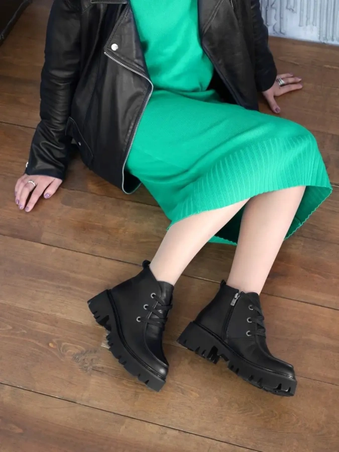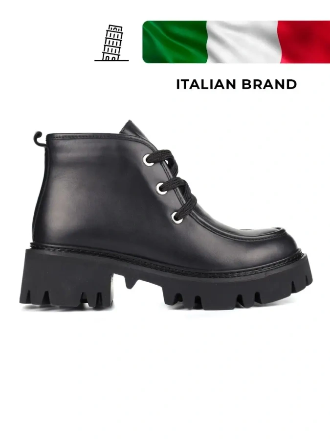 Демисезонные женские ботинки из натуральной кожи от итальянского бренда Donna Daniella. Внимание, модель большемерит. Ориентируйтесь на длину стельки в см.: 36 - 23,5/ 37 - 24/ 38 - 25/ 39 - 25,5/ 40 - 26,5. Утепленные байкой подкладка и стелька отлично сохраняют тепло и придают максимальный комфорт. Идеально подойдут на осень/весну и на не очень холодную (европейскую) зиму. Лаконичное классическое исполнение и стилизованная массивная подошва - прекрасная инвестиция в гардероб современной модницы. Модель оснащена шнуровкой и молнией, что облегчает процесс обувания и надежно фиксирует стопу. Удобная колодка адаптирована под женскую стопу и длительную носку. Подходят на стандартную полноту стопы и небольшой +/-