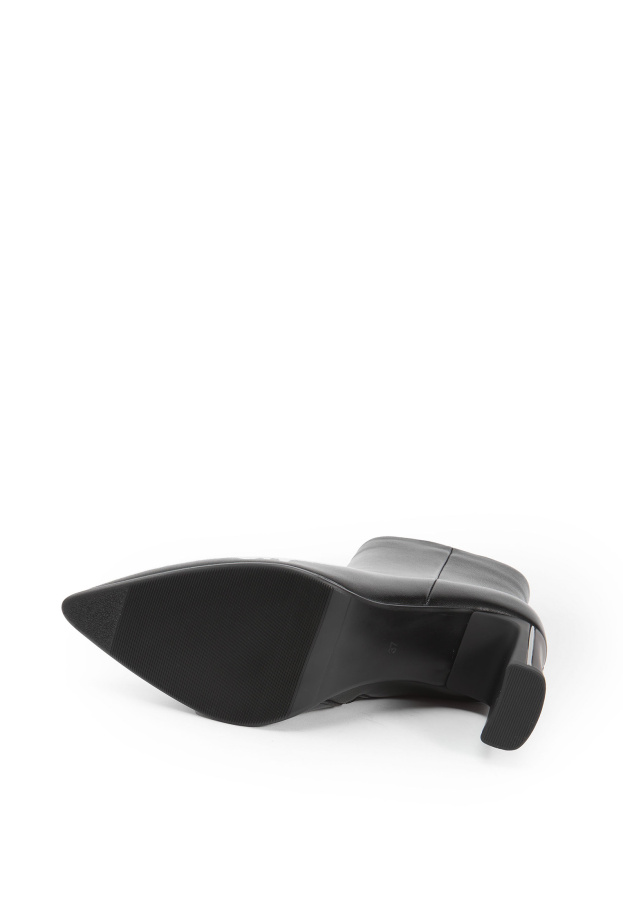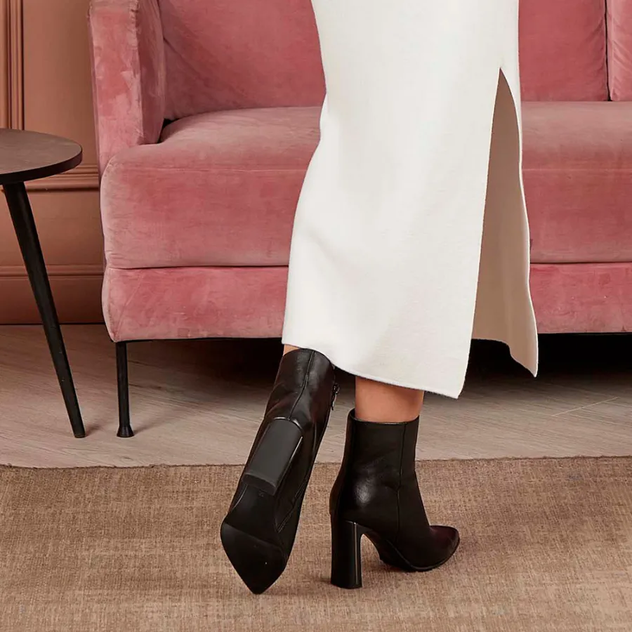 Модель изготовлена из 100% натуральной кожи, что обеспечивает её долговечность и элегантный внешний вид. Чёрные ботинки станут отличным дополнением к вашему осеннему гардеробу в стиле casual. Высота каблука 9 см придаёт обуви изящность, а удобная молния с внутренней стороны модели облегчает процесс обувания. Подкладка и стелька из байки обеспечивают комфорт при носке. Полимерная подошва высотой 0,7 см гарантирует практичность и лёгкость модели. Эти ботинки — выбор для уверенных и стильных женщин, ценящих качество и итальянский дизайн.