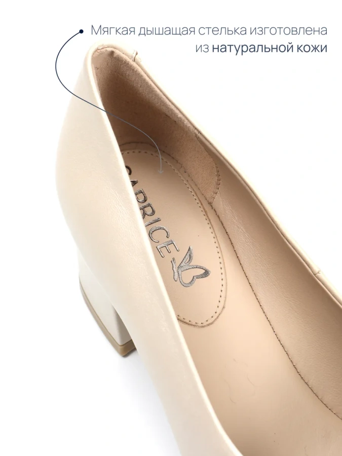 Женские кожаные туфли на невысоком каблуке классические от немецкого бренда Caprice.