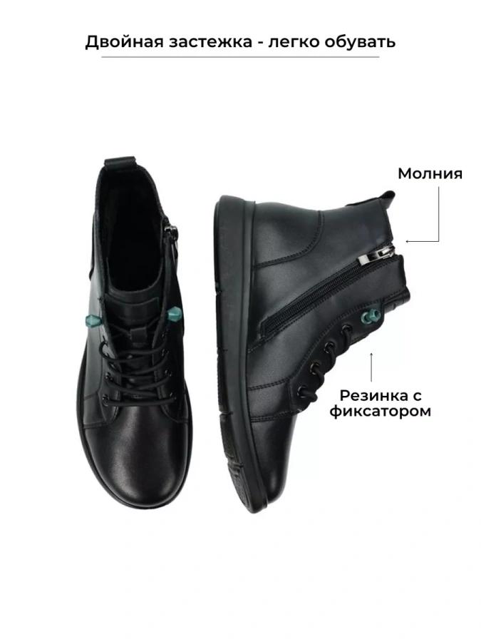 Ботинки имеют низкую подошву-платформу, что делает их удобными и подходящими для повседневного использования. Застежка-молния и резинка с фиксатором делают процесс надевания и снятия максимально удобным.