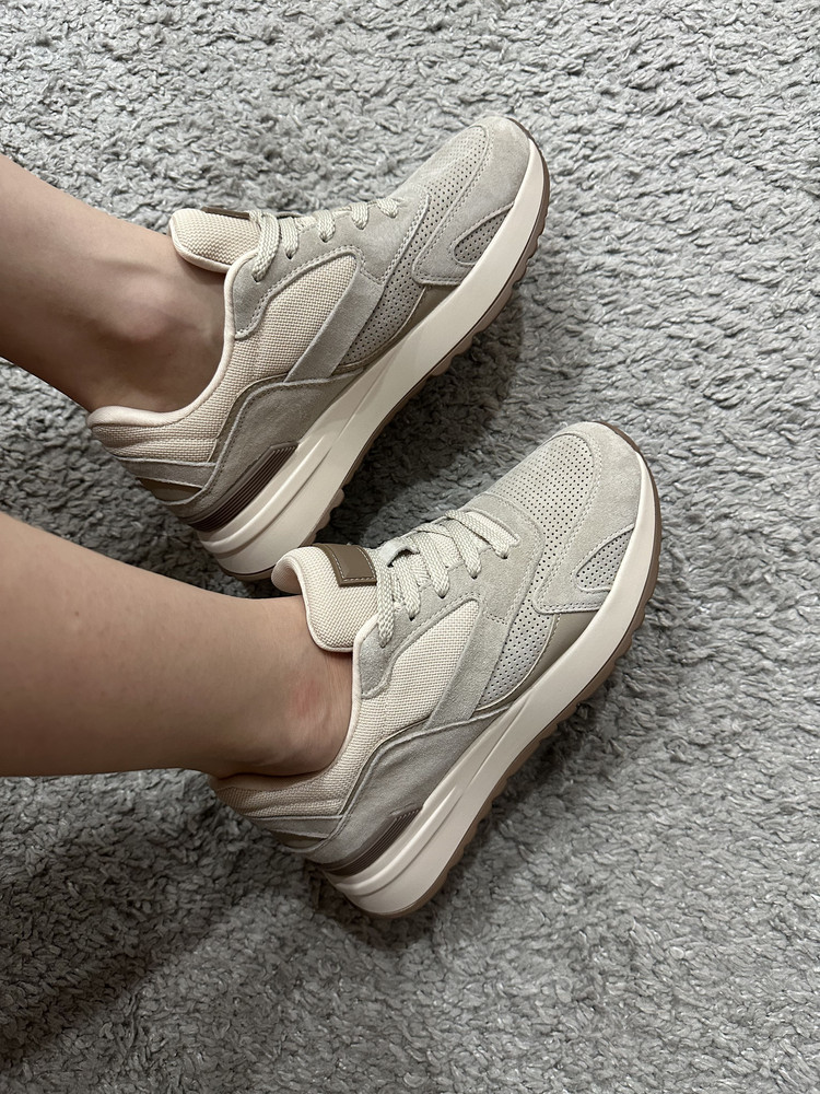 Натуральная кожа (велюр) обеспечивает комфорт и долговечность, а текстильная подкладка и стелька создают оптимальный микроклимат внутри обуви. Удобная шнуровка позволяет регулировать посадку обуви по своему усмотрению. Высота подошвы в 2 см и каблука в 4 см делает эти кроссовки не только стильными, но и удобными для повседневной носки.