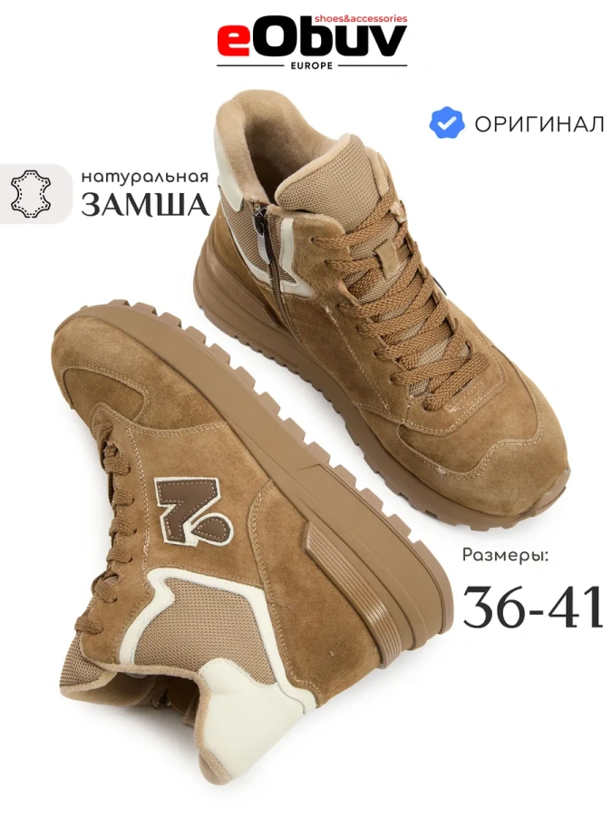 Натуральная кожа (замша) высокого качества, из которой изготовлен верх кроссовок, обеспечивает комфорт и долговечность. Мягкая байковая подкладка и стелька создают уют и тепло, необходимые в прохладное время года.