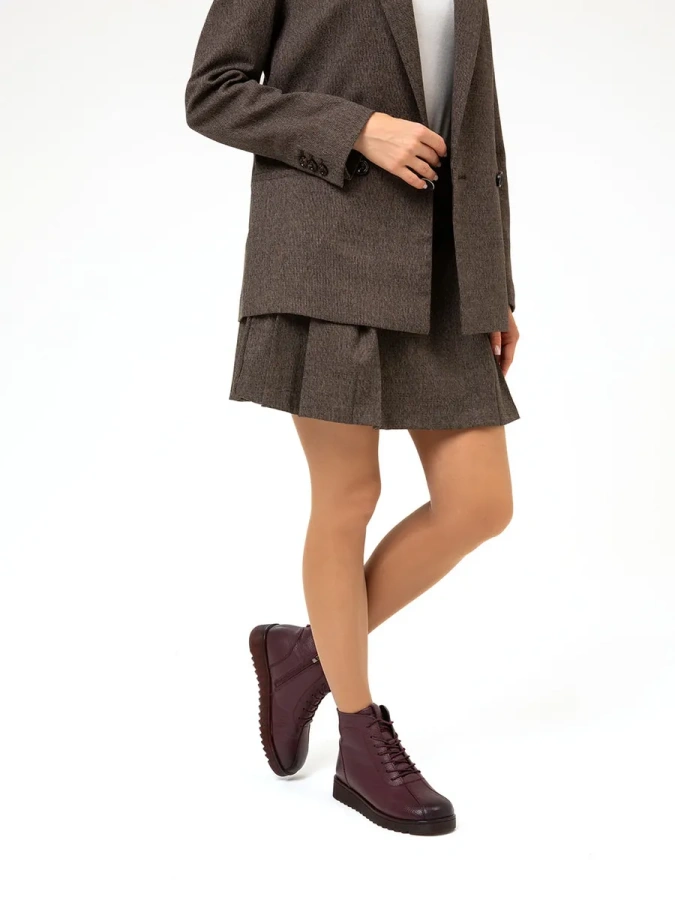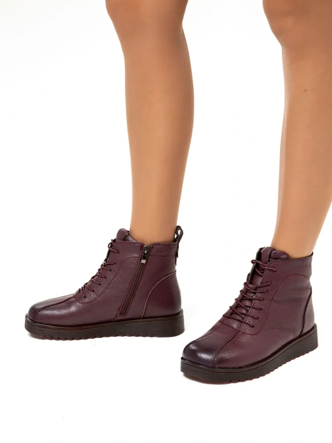 Изготовленные из 100% натуральной кожи, они обеспечат долговечность и комфорт. Искусственный мех внутри гарантирует сохранение тепла, а удобная подошва из полимерного материала обеспечивает лёгкость и удобство при ходьбе. Высота подошвы — 2 см, а высота каблука — 3,5 см. Удобная застёжка-молния в сочетании с резинкой и фиксатором обеспечивает простоту использования и комфорт. Стиль casual делает эти ботинки отличным дополнением к повседневному гардеробу в сезоне осень-зима 2024–2025.