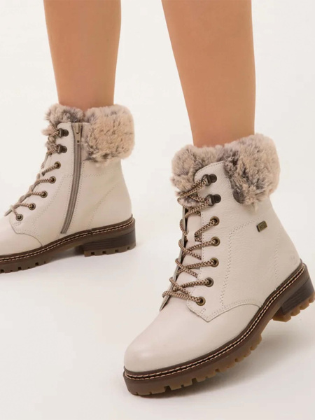 Прямоугольный каблук высотой 4,5 см добавляет женственности, сохраняя при этом удобство. Шнуровка и молния обеспечивают точную посадку, а резиновая подошва гарантирует отличное сцепление с поверхностью. Remonte - Ваш выбор для стильных и теплых шагов в холодные зимние дни.