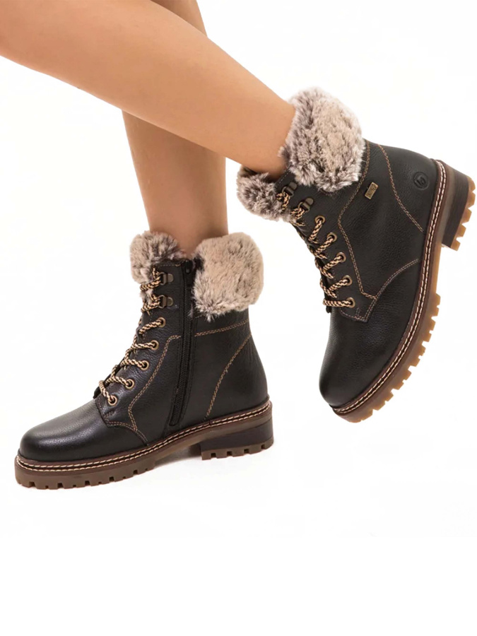 Погрузитесь в элегантность и тепло с зимними ботинками Remonte из коллекции Осень-Зима 2023-2024. Черные, созданные в Швейцарии, женские ботинки сочетают в себе Casual стиль, удивительный комфорт и надежную защиту от холода.