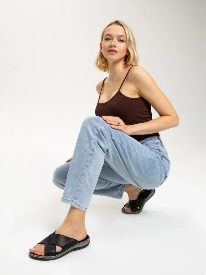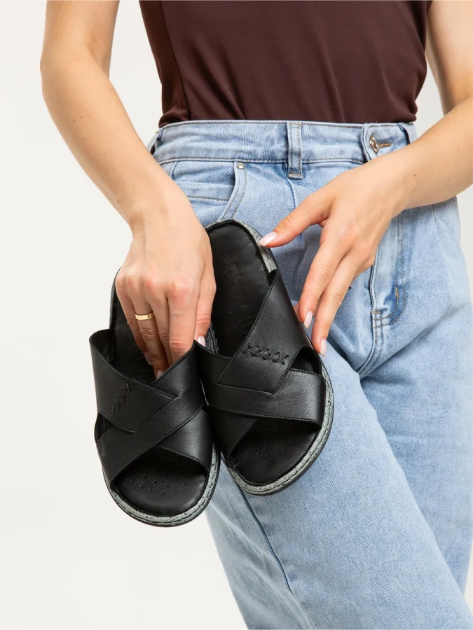 Изготовленные из 100% натуральной кожи, они обеспечивают комфорт и долговечность. Чёрный цвет сабо делает их универсальными для любого летнего образа. Удобная танкетка высотой 3 см и небольшая платформа в 1,5 см делают эту обувь не только стильной, но и удобной для долгих прогулок. Отсутствие застёжек обеспечивает лёгкость и быстроту надевания. Откройте для себя комфорт и стиль с сабо от eObuv!