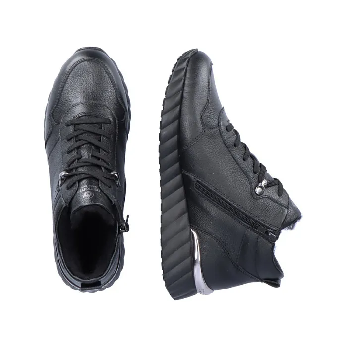 Привнесите роскошь и утонченность в свой зимний гардероб с женскими кроссовками от престижного швейцарского бренда REMONTE. Черные кроссовки, разработанные в Швейцарии, представляют собой яркий шедевр стиля и функциональности, идеально вписываясь в тренды сезона Осень-Зима 2023-2024.