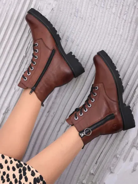 Демисезонные женские ботинки из 100% натуральной кожи от немецкого бренда REMONTE. Идеально подойдут на осень/весну и на не очень холодную (европейскую) зиму. Утепленная несъемная стелька выполнена из войлока, что повышает теплоизоляционные свойства и придает максимальный комфорт. Подошва на устойчивом каблуке, обладает износостойкостью и хорошим сцеплением. Удобная колодка адаптирована под женскую стопу и длительную носку. Две боковые молнии существенно облегчают процесс обувания, а наличие шнуровки позволяет регулировать высоту подъёма. Подходят на стандартную полноту стопы и небольшой +/-