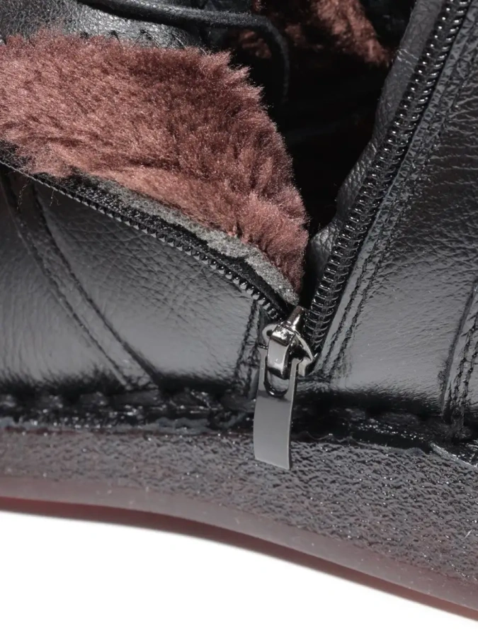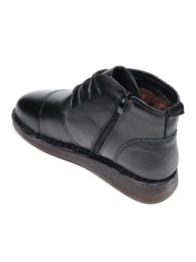 Зимние женские ботинки из натуральной кожи от бренда eObuv. Длина стельки в см.: 36 - 23,5/ 37 - 24/ 38 - 24,5/ 39 - 25,5/ 40 - 26. Утепленные шерстью подкладка и съемная стелька отлично сохраняют тепло и придают максимальный комфорт при низких температурах. Идеально подойдут на холодную осень и зиму. Универсальная модель прекрасно подойдет для повседневной носки на каждый день. Удобная колодка адаптирована под женскую стопу и длительную носку. Сочетание шнуровки и молнии облегчает процесс обувания и и обеспечивает комфортную посадку на ноге. Подходят на стандартную полноту стопы и небольшой +/-