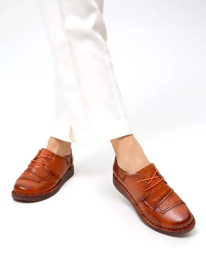 Подкладка из текстиля и мягкая стелька придают максимальный комфорт ноге. Идеально подойдут на теплый период осени/весны. Дизайнерское решение в виде сочетания кожи различных цветов - изюминка модели и прекрасное дополнение в модный гардероб. Подошва на небольшой платформе обладает высокой амортизацией и хорошим сцеплением с поверхностью. Удобная колодка адаптирована под женскую стопу и длительную носку, а наличие шнуровки позволяет регулировать высоту подъёма.