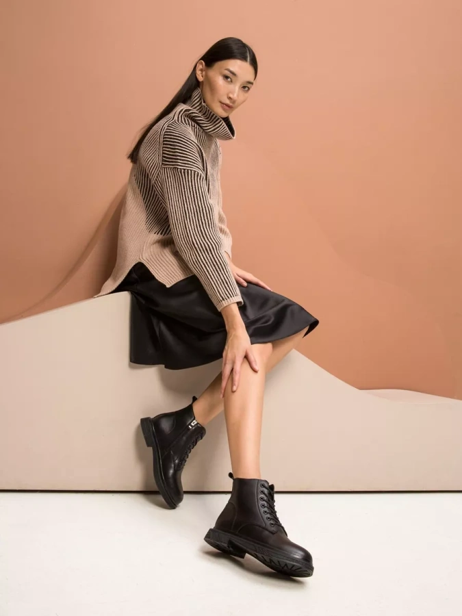 Разработанные в Италии, ботинки изготовлены из 100% натуральной кожи, что обеспечивает прочность и элегантный внешний вид. Черный цвет делает их универсальными и легко сочетаемыми с различными нарядами.