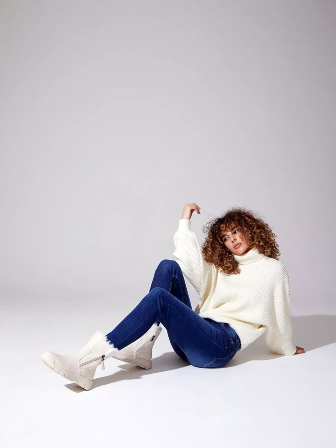 Погрузитесь в итальянскую элегантность с ботинками Donna Daniella в нежном бежевом оттенке, ставшим неотъемлемой частью коллекции Осень-Зима 2023-2024. Женские ботинки - идеальный выбор для стильного и уютного образа в холодные зимние дни.