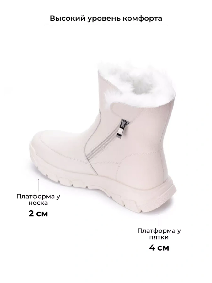 Удобная резиновая подошва с высотой 2 см обеспечивает устойчивость и комфорт при ходьбе, а также добавляет изысканности и элегантности. Молния делает процесс обувания быстрым и легким. Модель имеет полноту G(7) и подойдет на стандартную стопу и небольшой +/-.