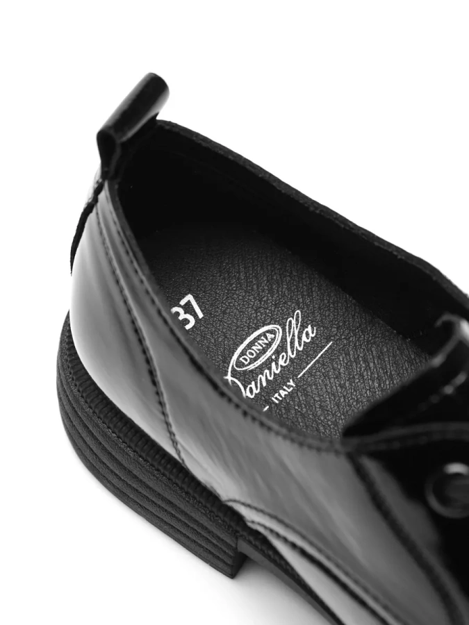 Туфли Donna Daniella — это идеальный выбор для осеннего сезона. Итальянский бренд известен своим качеством, и эти туфли не исключение. Лаковая натуральная кожа верха, подкладки и стельки обеспечивает не только привлекательный внешний вид, но и комфорт при носке. Высота подошвы в 1,2 см и устойчивый каблук в 3 см (форма каблука — «кирпичик») делают обувь удобной и практичной. Удобная шнуровка позволяет регулировать посадку обуви на ноге.