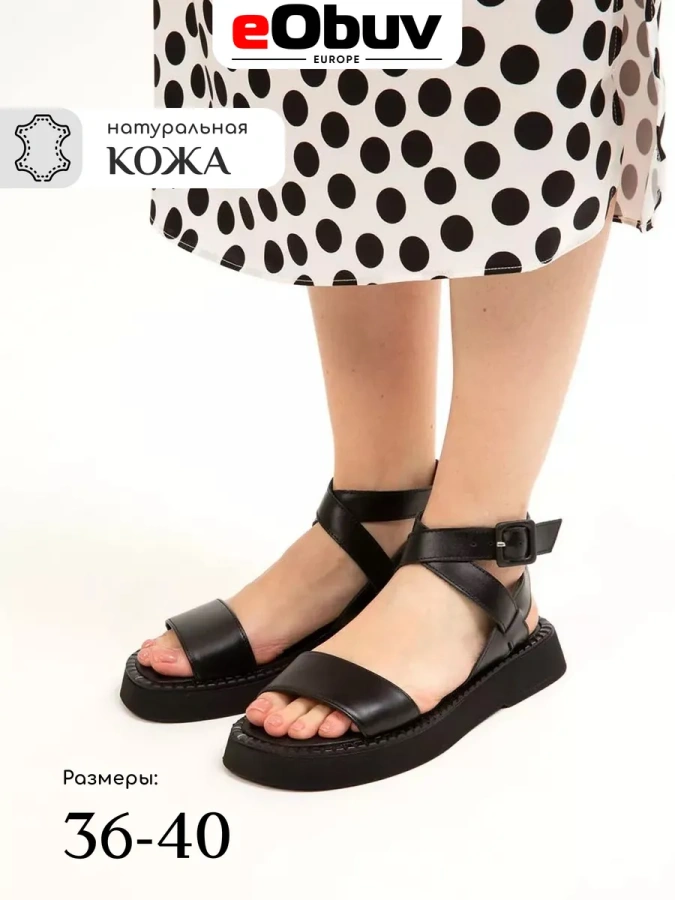 Женские сандалии из натуральной кожи от бренда eObuv. Длина стельки в см.: 36 - 23,5/ 37 - 24/ 38 - 24,5/ 39 - 25,5/ 40 - 26. Высота подошвы в пяточной части - 3 см., высота подошвы в носочной части - 2 см. Подкладка и стелька выполнены из натуральной кожи, что повышает прочность изделия и придает максимальный комфорт ноге в летний период.Подошва на платформе обладает износостойкостью и хорошим сцеплением с поверхностью, что делает сандалии долговечными и практичными. Удобная колодка адаптирована под женскую стопу и длительную носку, а ремешок на щиколотке обеспечивает комфортную фиксацию на ноге. Подходят на стандартную полноту стопы и небольшой +/-.