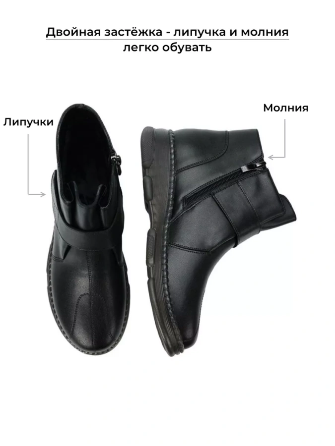 Особенностью этих ботинок является наличие молнии и липучек в качестве типа застежки, что делает их легкими в носке и снятии. Этот дизайн обеспечивает хорошую фиксацию и поддержку, что делает ботинки отличным выбором для повседневного использования в осенне-зимний период.