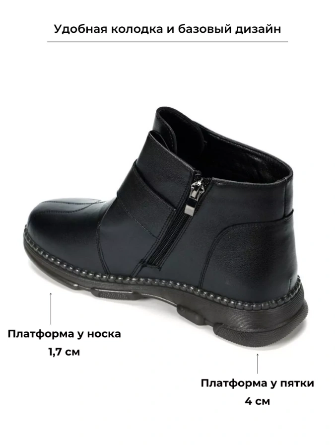 Байковая подкладка и стелька обеспечивают мягкость и комфорт при носке. Благодаря танкетке высотой 4 см, ботинки придают ноге женственный контур, а подошва из полимерного материала предоставляет устойчивость и удобство. Модель имеет полноту G(7) и подойдет на стандартную стопу и небольшой +/-.