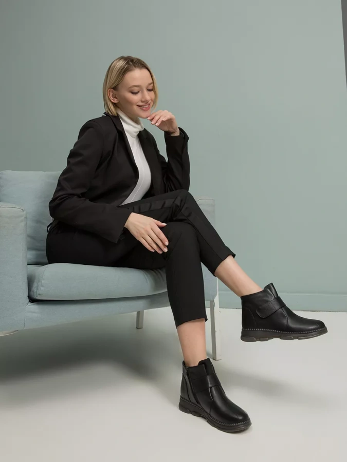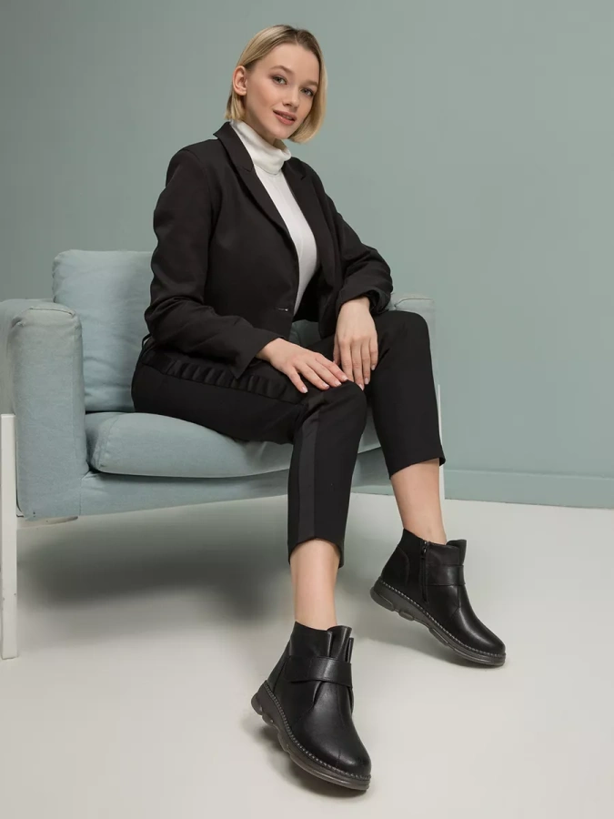 Черные женские ботинки Donna Daniella представляют стильный и комфортный вариант для осенне-зимнего сезона.