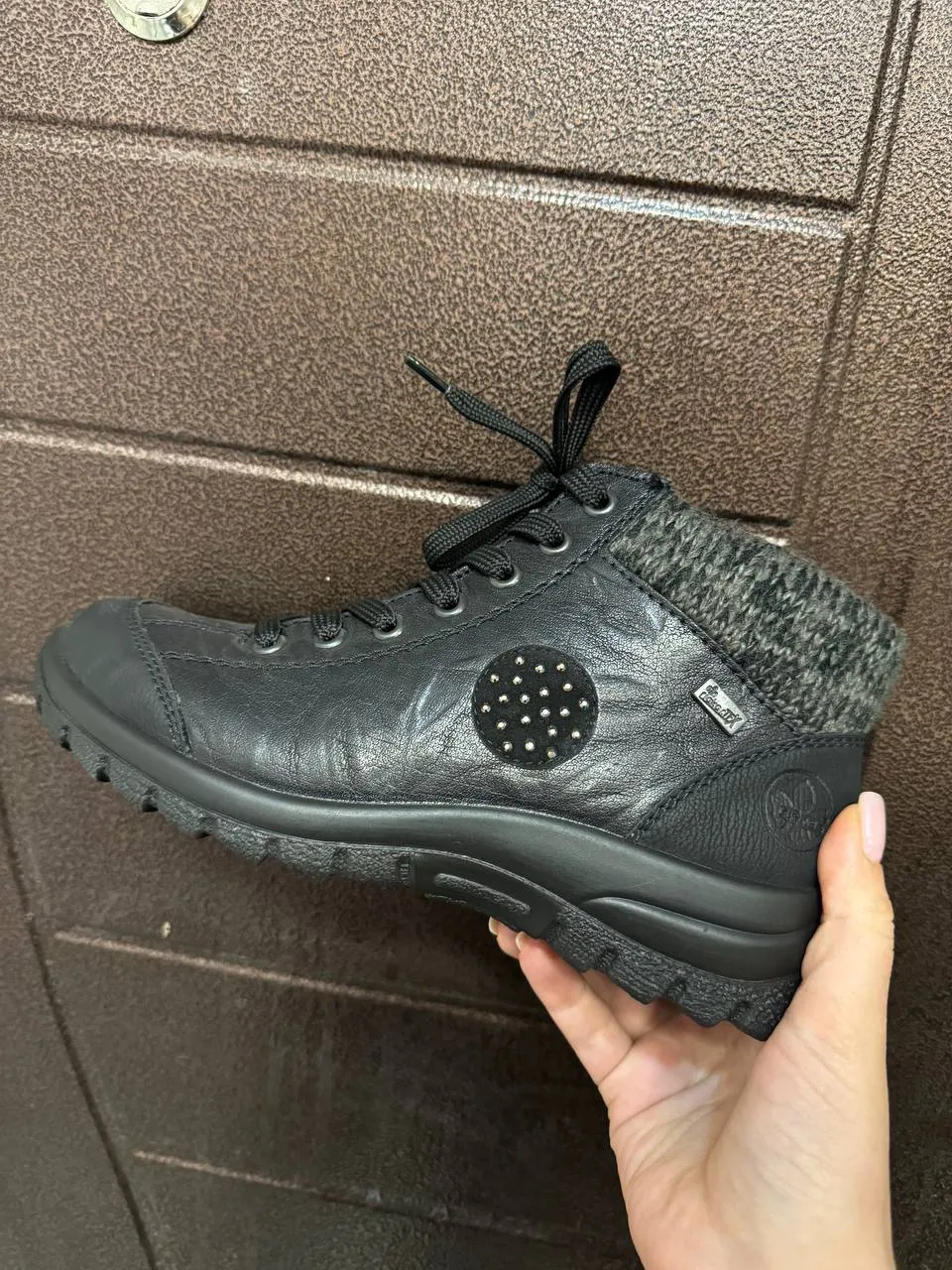 Утепленные невысокие женские ботинки из 100% натуральной кожи от немецкого бренда RIEKER. Главная отличительная черта обуви этого бренда - непревзойденное удобство и комфорт. Подкладка из натуральной овечьей шерсти обладает хорошими теплоизоляционными свойствами. Несъемная шерстяная стелька с «эффектом памяти» Antistress индивидуально подстраивается под форму стопы, снимает чувство усталости и разгружает суставы, поддерживает и амортизирует стопу. Устойчивая подошва с эффектом ударопоглощения обладает повышенной амортизацией и хорошим сцеплением с поверхностью. Удобная колодка адаптирована под женскую стопу и длительную носку. Боковая молния существенно облегчают процесс обувания, а наличие шнуровки позволяет регулировать высоту подъёма. Модель имеет полноту G(7) и подойдет на стандартную стопу и небольшой +/-.