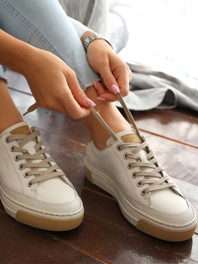 Женские кеды из натуральной кожи от бренда RIEKER. Главная отличительная черта обуви этого бренда - непревзойденное удобство и комфорт. Идеально подойдут на теплую весну и лето. Подкладка из текстиля устойчива к износу и хорошо вентилируются. Мягкая кожаная стелька с «эффектом памяти» Antistress индивидуально подстраивается под форму стопы, снимает чувство усталости и разгружает суставы, поддерживает и амортизирует стопу. Гибкая подошва обладает повышенной амортизацией. Удобная колодка адаптирована под женскую стопу и длительную носку, а наличие шнуровки позволяет регулировать посадку на ноге. Модель подойдет на стандартную полноту стопы и небольшой +/-.