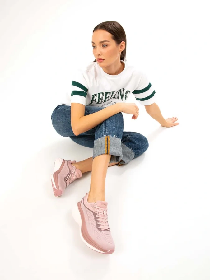 Розовая расцветка добавит яркости в ваш образ, а текстильный материал верха и подкладки обеспечит комфорт. Лёгкая подошва из полимерного материала и удобная шнуровка делают эти кроссовки не только стильными, но и практичными. Высота подошвы 2,5 см и каблука 5 см обеспечивает удобство и комфорт при ходьбе. Подходят для любого времени года и станут отличным дополнением к вашему гардеробу . Высота пяточной части - 5 см., высота подошвы в носочной части – 2,5 см., высота задника - 7 см.