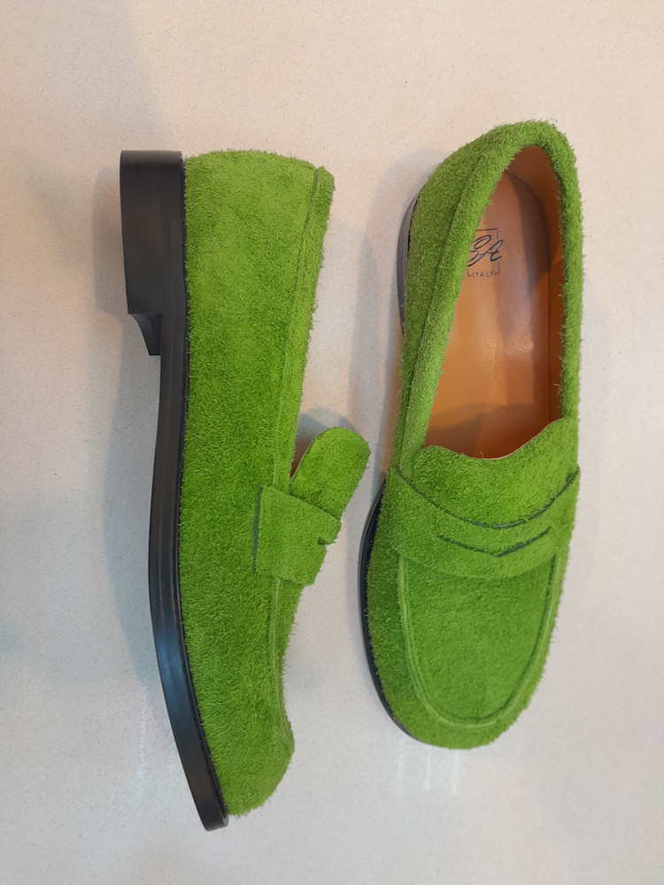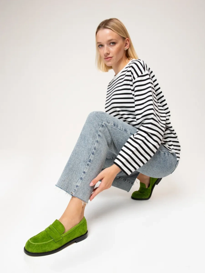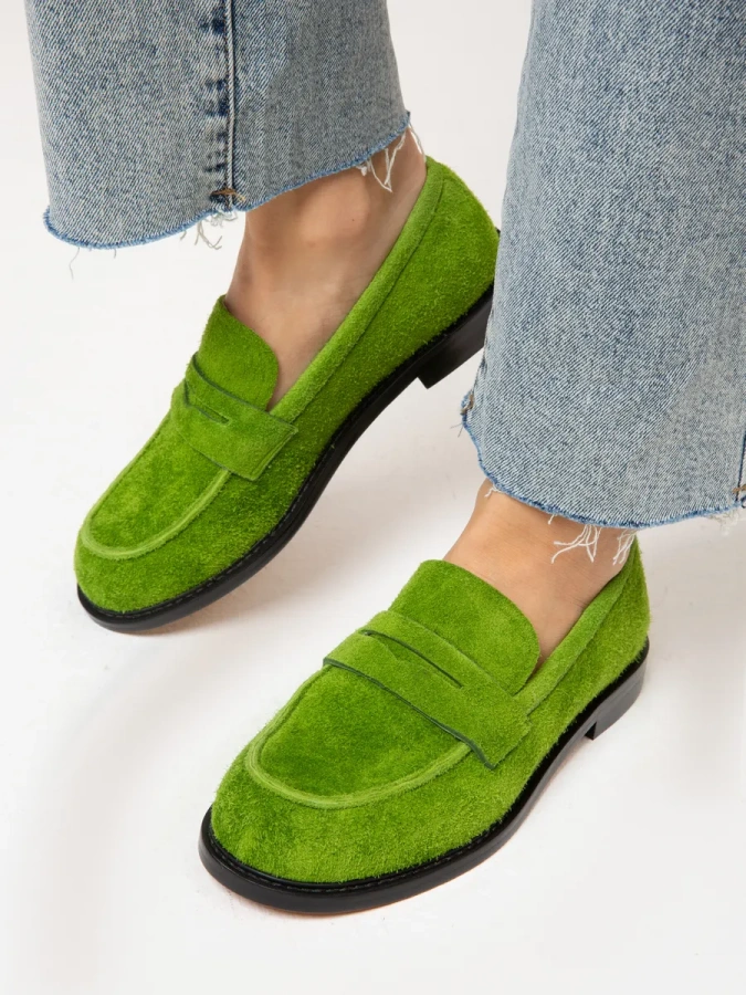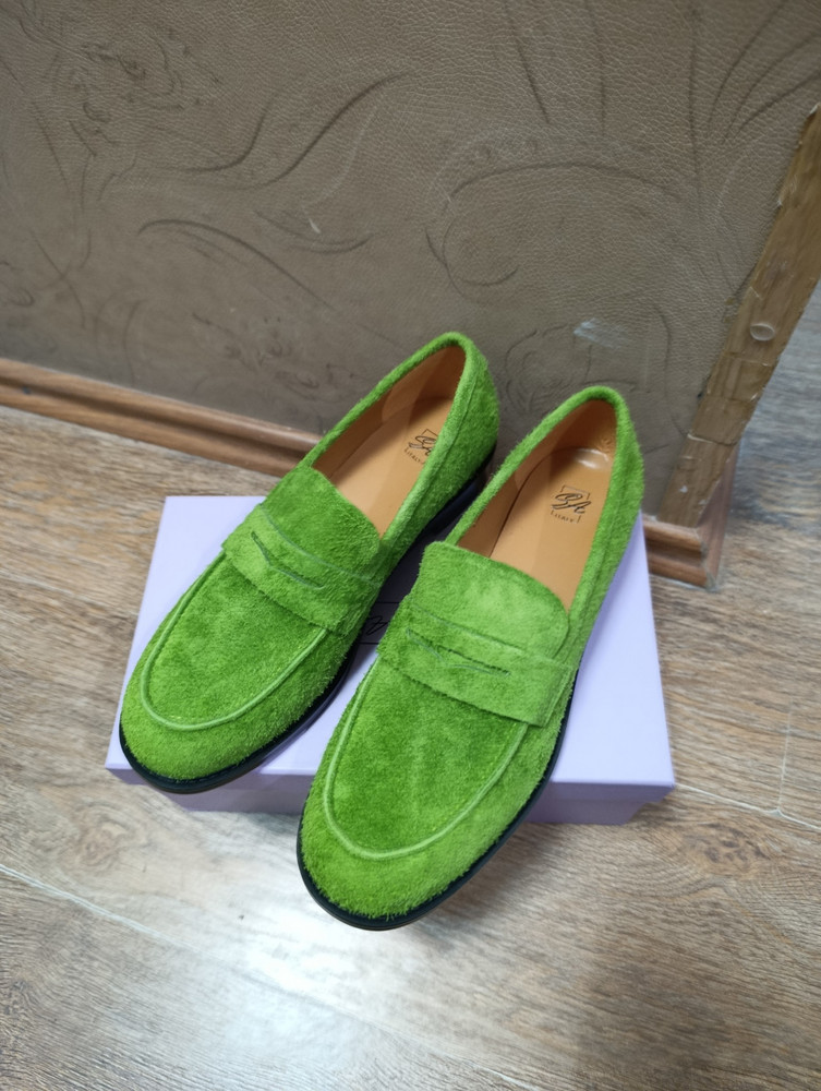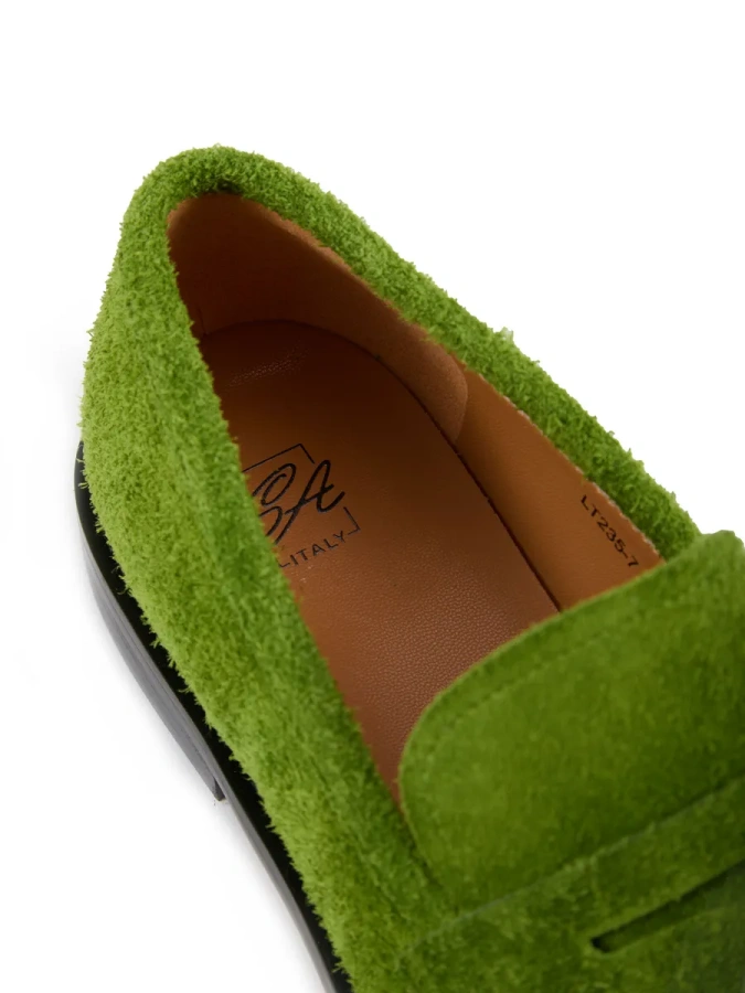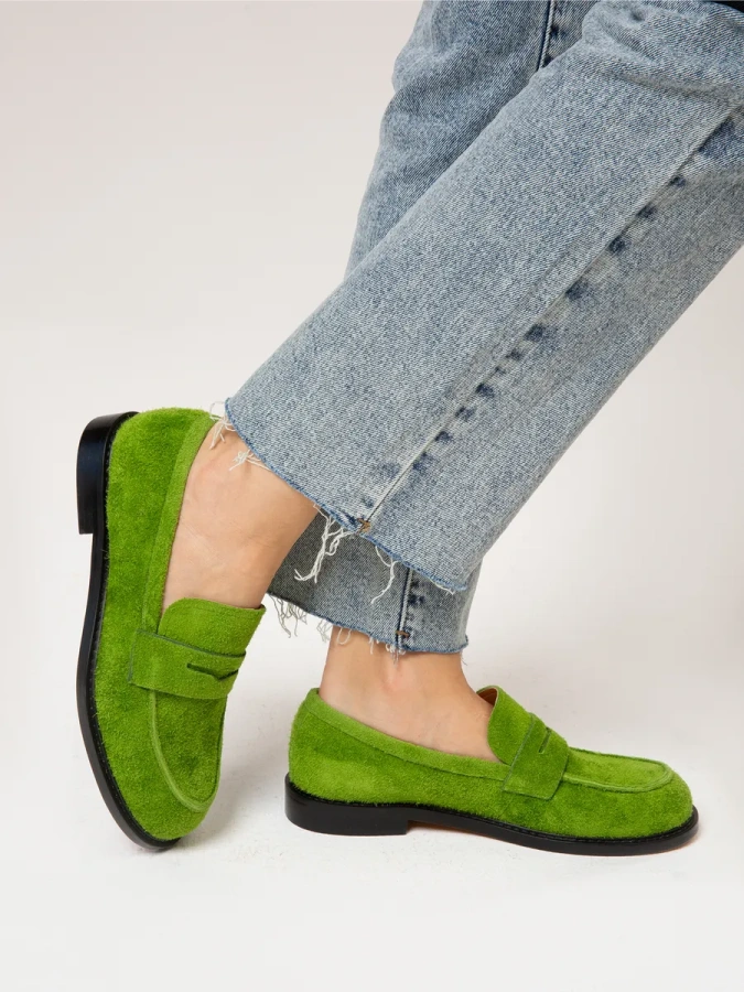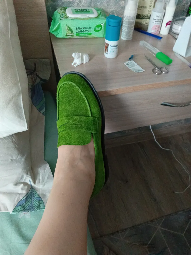 Изготовленные из 100% натуральной кожи (замши), они станут отличным дополнением к вашему образу в стиле casual. Зелёный цвет лоферов добавит яркости и свежести в ваш весенний гардероб. Удобная подошва из полиуретана и небольшой каблук высотой 2,5 см обеспечивают комфорт при ходьбе. Высота подошвы/платформы составляет 1 см, что придаёт обуви лёгкость и изящество.