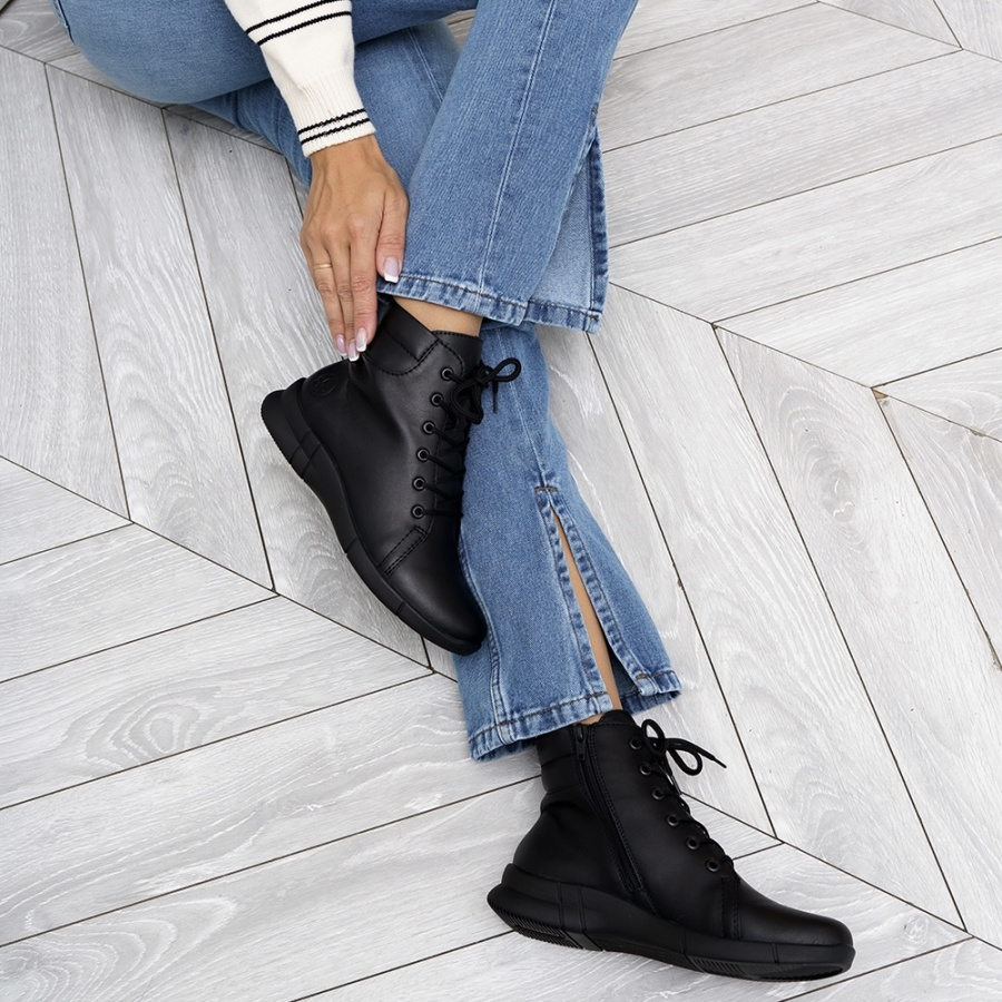 Представляем Вам женские ботинки RIEKER – идеальное сочетание стиля и комфорта. Вдохновленные осенним настроением, черные ботинки станут незаменимым аксессуаром в холодное время года.
