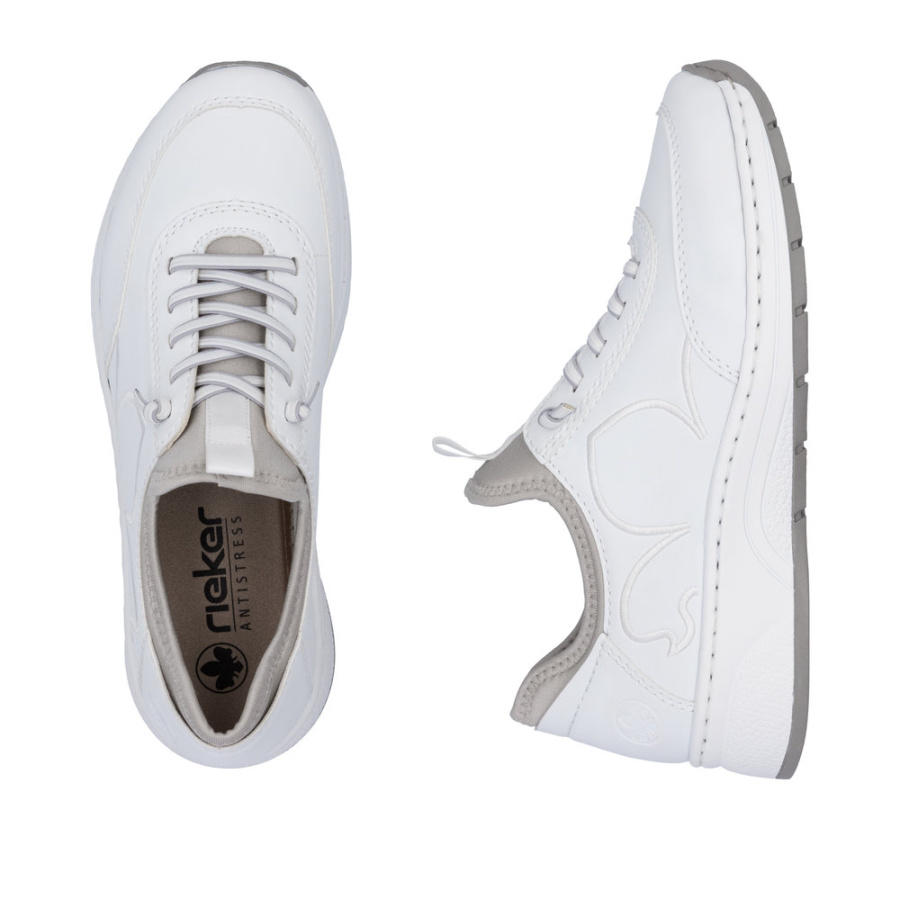 Бренд из Швейцарии представляет модель, которая станет отличным дополнением к вашему гардеробу. Стильный дизайн в спортивном стиле и универсальный белый цвет делают эти кроссовки подходящими для любого образа. Материал верха — сочетание искусственной кожи и текстиля — обеспечивает комфорт и долговечность. Кроссовки RIEKER предназначены для носки в любое время года и станут незаменимыми в вашей повседневной жизни. Высота подошвы 1,5 см и устойчивый каблук высотой 3,5 см обеспечивают удобство и поддержку стопы. Резинка с фиксатором на застёжке гарантирует надёжную фиксацию обуви на ноге. Выбирайте качество и стиль с RIEKER!
