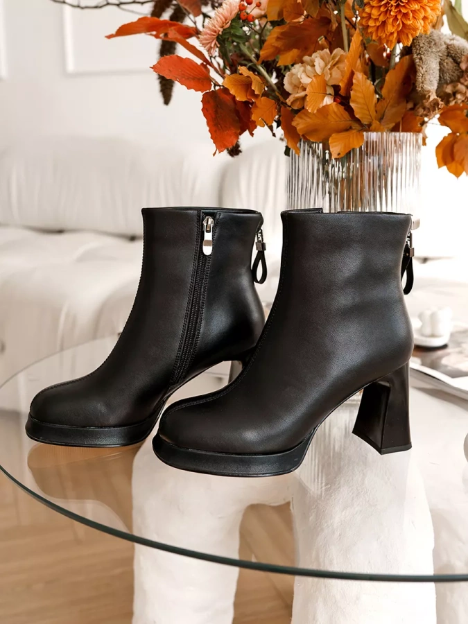 С фигурным каблуком высотой 9 см и удобной резиновой подошвой высотой 2 см, эти ботильоны придают Вашему образу изысканность и стиль. Боковая молния облегчает надевание и снятие обуви, делая процесс максимально удобным. Задняя молния декоративная. Модель имеет полноту G(7) и подойдет на стандартную полноту стопы и небольшой +/-.
