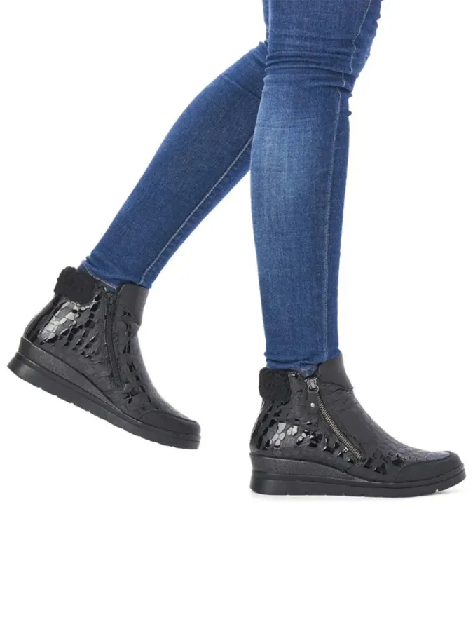 Молния обеспечивает легкость обувания, а резиновая подошва гарантирует надежное сцепление с поверхностью. Remonte - это ботинки, которые не только подчеркивают Ваш стиль, но и придают уверенности в каждом шаге в холодный зимний сезон.